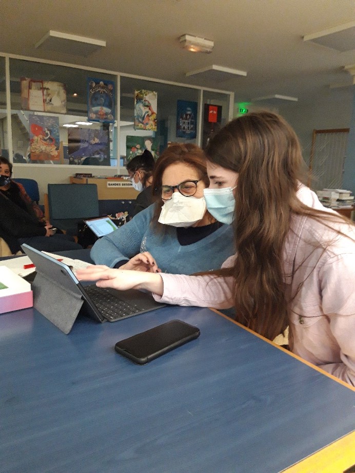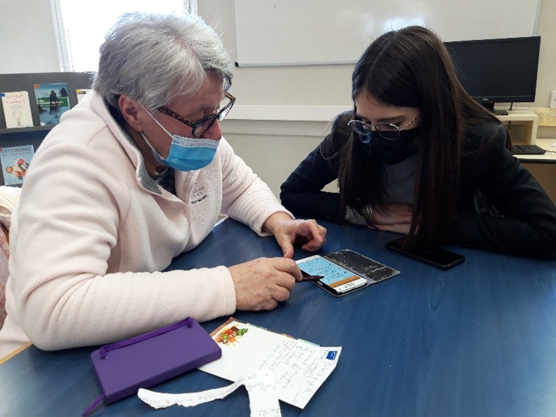 *Nous trouvons que ce projet est une bonne idée, car on aide certaines personnes en difficultés sur l’informatique (téléphone, ordinateur). Mais on apprend aussi des choses assez intéressantes. Ça permet aussi de créer des liens avec certains séniors. Mayra et Dounia « Juniors »