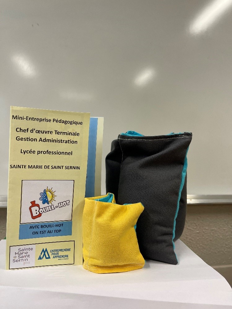 Le projet de la mini entreprise BOUILL-HOT est une entreprise pédagogique qui se déroule sur les 2 ans de baccalauréat professionnel gestion administration et dans le cadre du chef-d’œuvres. Les élèves de terminale sont accompagnés par leurs professeurs et d’un mentor M. MARCEROU directeur d’une régie de quartier. BOUILL-HOT réalise des bouillottes pour se chauffer l’hiver mais également pour le confort.